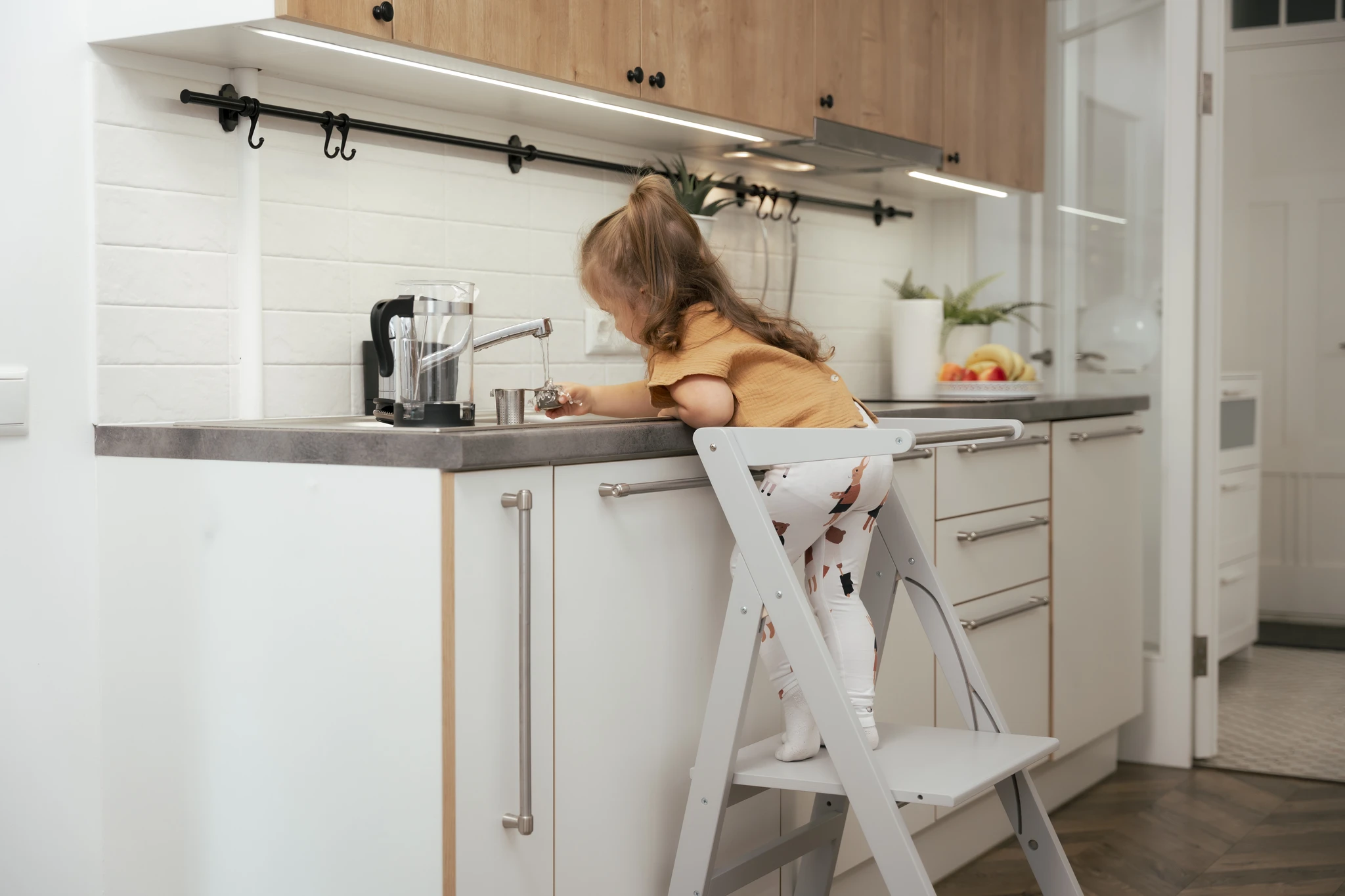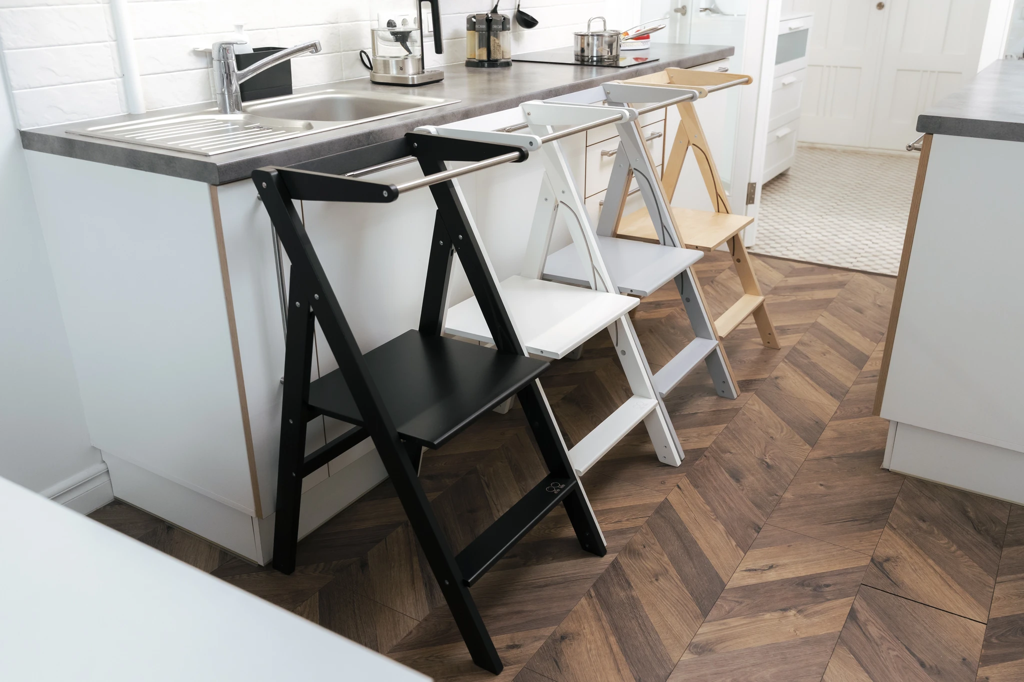 Toolile astudes ulatuvad lapsed köögitasapinnani ja saavad igapäevaselt koos vanematega köögis toimetada. Samuti on tool suureks abiks iseseisvalt hammaste või käte pesemisel.