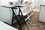 Tooli on võimalik lihtsasti kokku voltida, mis on ruumisäästlik ja praktiline lahendus.