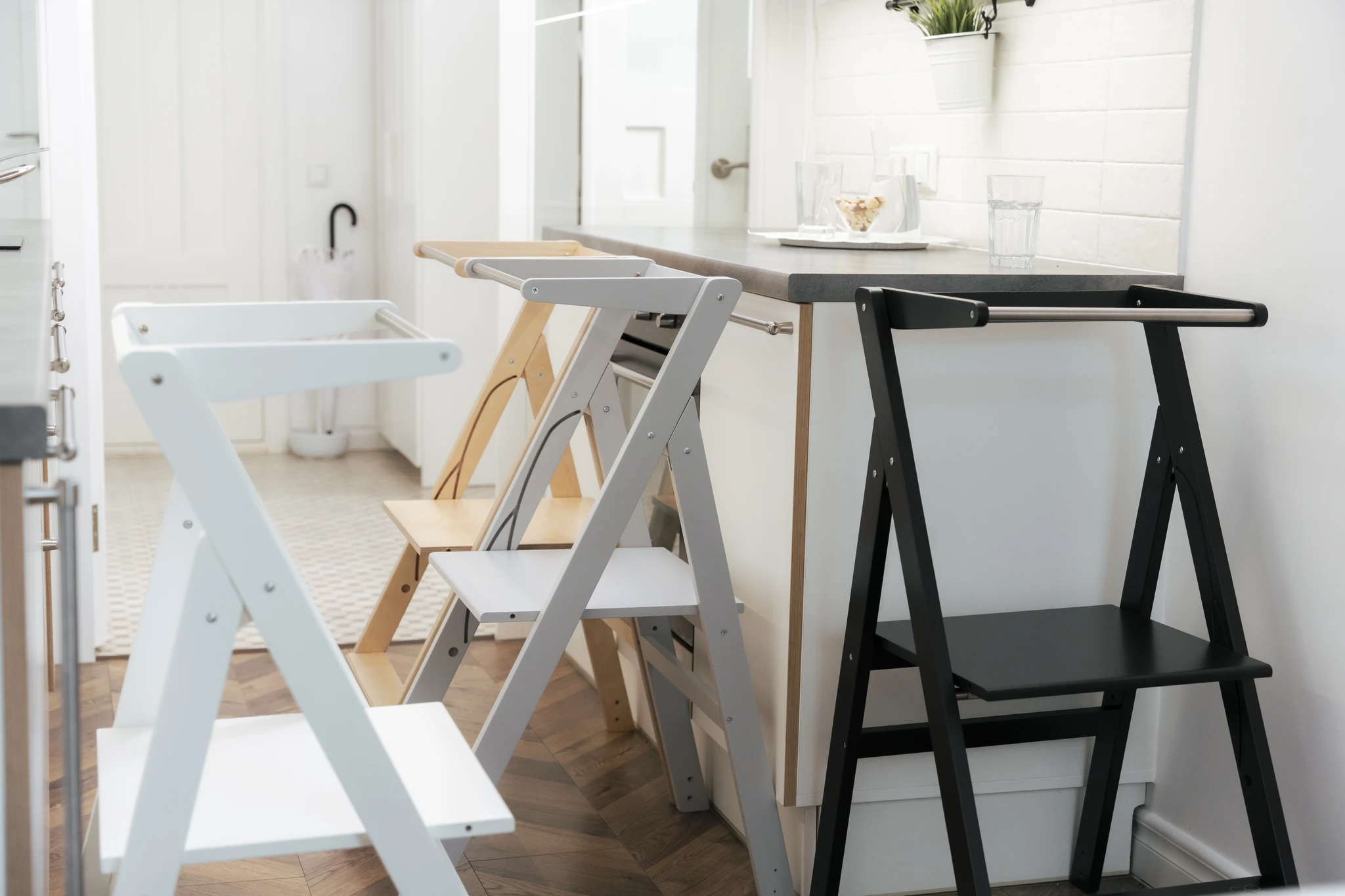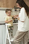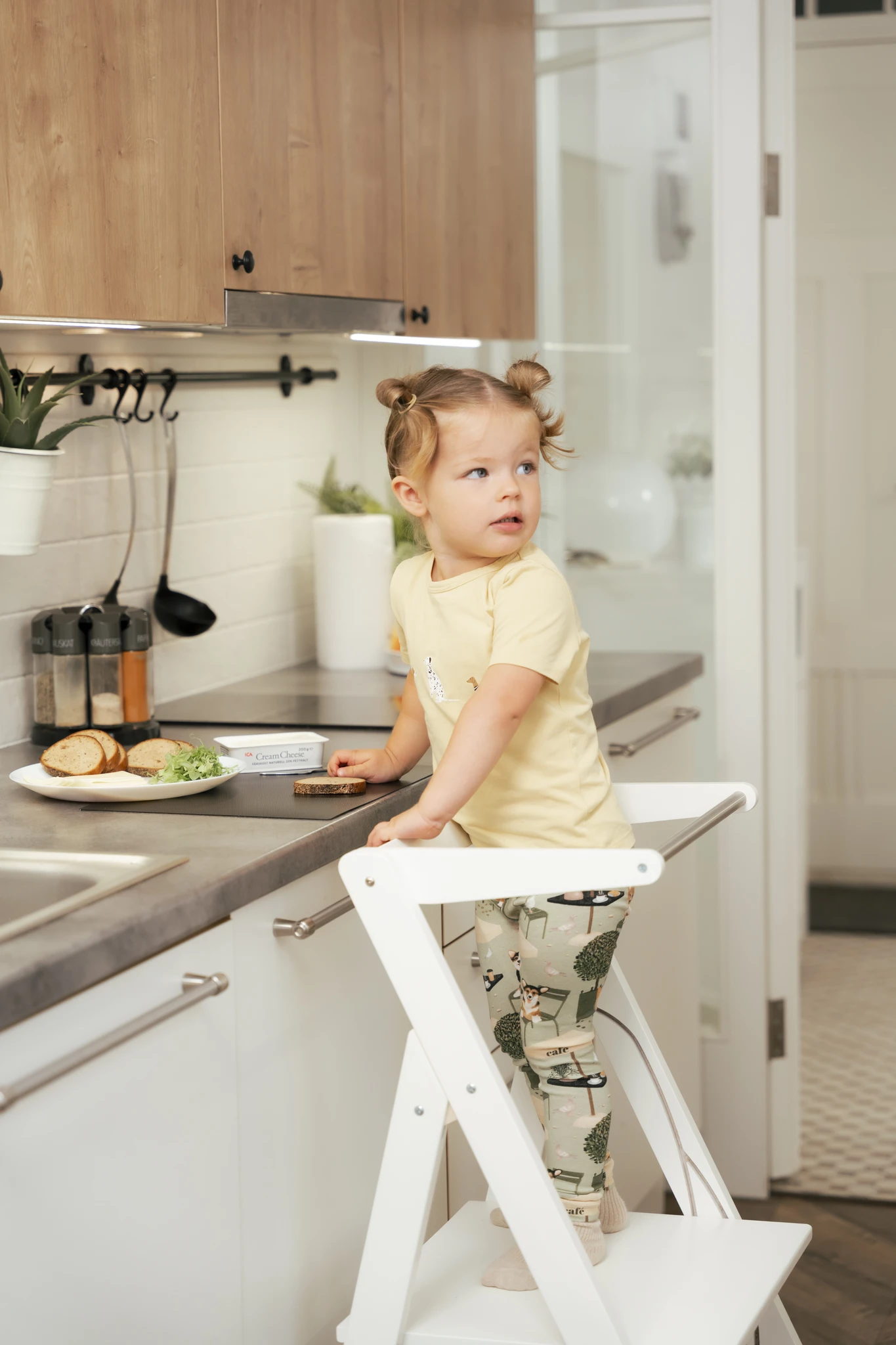 Toolile astudes ulatuvad lapsed köögitasapinnani ja saavad igapäevaselt koos vanematega köögis toimetada. Samuti on tool suureks abiks iseseisvalt hammaste või käte pesemisel.
